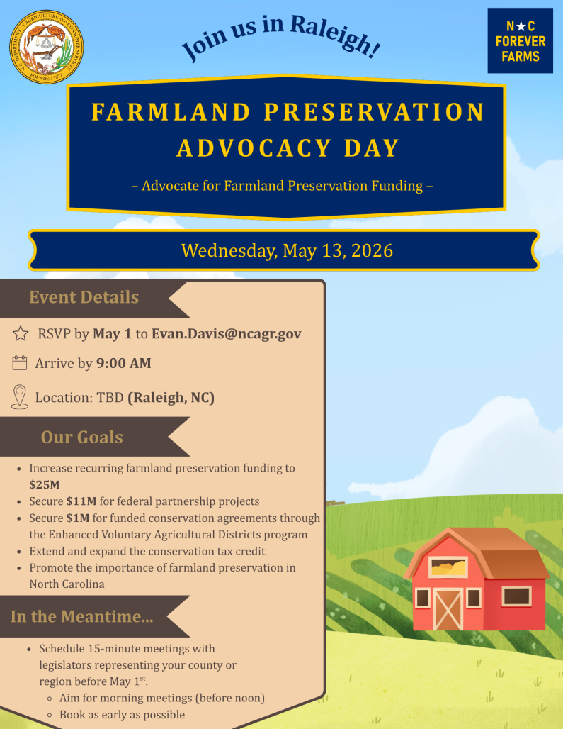- Mid-February through April 2: Conservation easement site visits and Projects, Plans, and Agricultural Growth Zones interviews