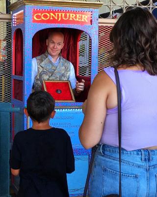 The Conjurer Fortune Machine is a nod to the Zoltar-style automaton fortune machine that dispenses cards with a fortune. With the Conjurer Fortune Machine, fairgoers will press a button to activate the real live Conjurer who offers funny insights and advice before handing out a souvenir fortune card with an inspiring message.