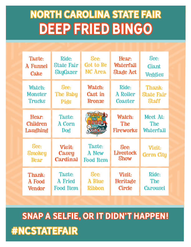 Got to Be NC Bingo brings a fun, interactive twist to the Got to Be NC Agriculture Pavilion inside Dorton Arena! You can pick up a bingo card, explore the Pavilion’s local vendors and exhibits and mark off squares with the vendors as you discover North Carolina products and farm favorites. The first 100 fairgoers to turn in their completed card each day at the Got to Be NC merch booth near the cooking stage will take home a Got to Be NC tote, making it the best way to learn, taste and celebrate all things grown, raised, caught and made right here in North Carolina. |