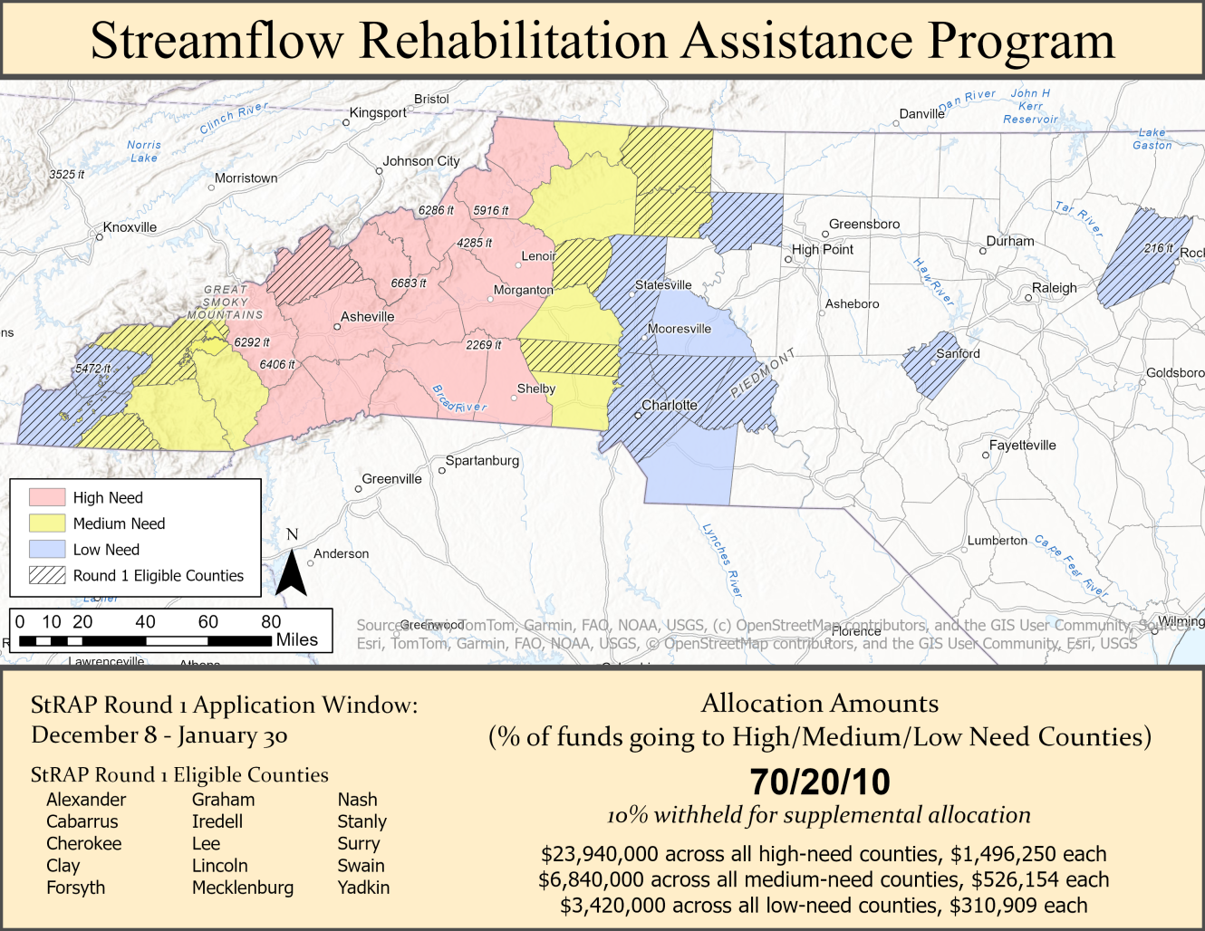 The Emergency Watershed Protection Program is a federal watershed recovery program aimed to protect lives and imminently threatened structures in or along waterways. You can read more about the program on the North Carolina EWP Program website.