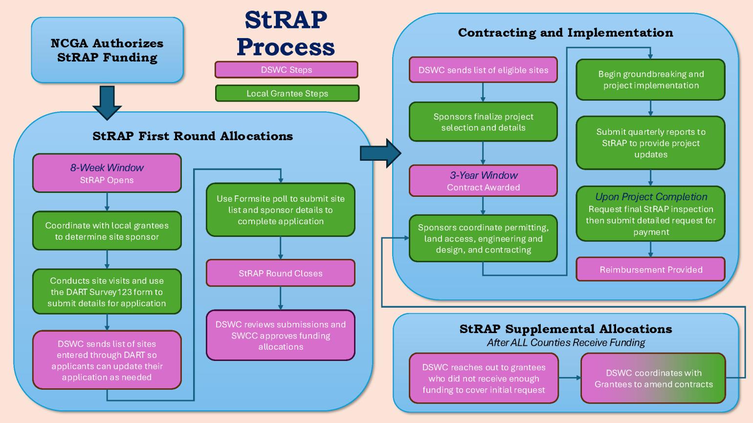 StRAP will begin accepting applications on a rolling application process, with counties becoming eligible to apply for StRAP funds once all EWP enrollment in that count is completed (or if no organizations in the county are applying for EWP). StRAP staff will post information announcing when organizations in each county can apply for funding. Once an application window begins, organizations in that county (or counties) will have 8 weeks to submit applications. Please pay attention to updates on the StRAP website for more information.